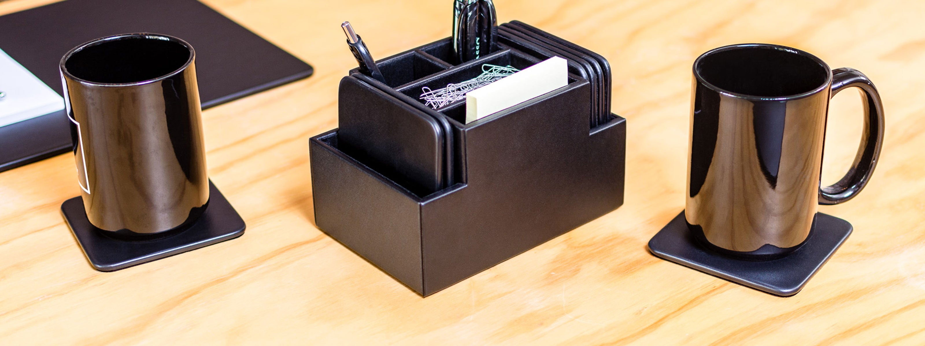Just added to our product line! White Bonded Leather Desk Accessories!