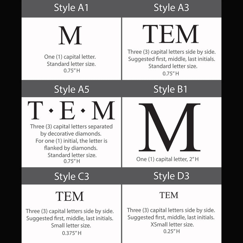 Available Options: Deboss (24 or 36pt Times New Roman font) or laser engraving.
