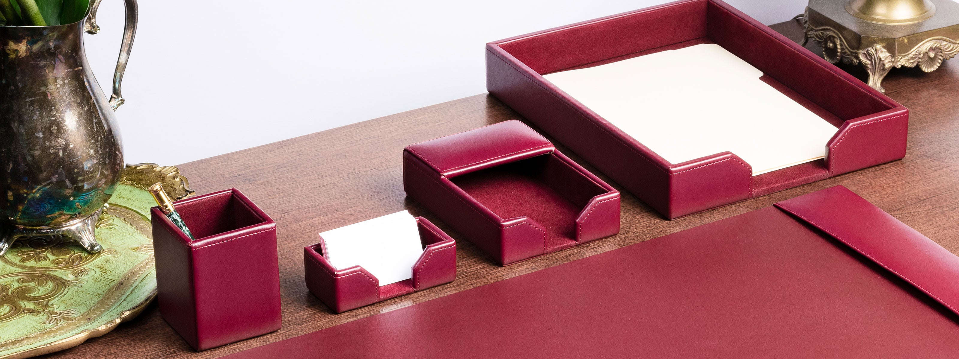 Just added to our product line! White Bonded Leather Desk Accessories!